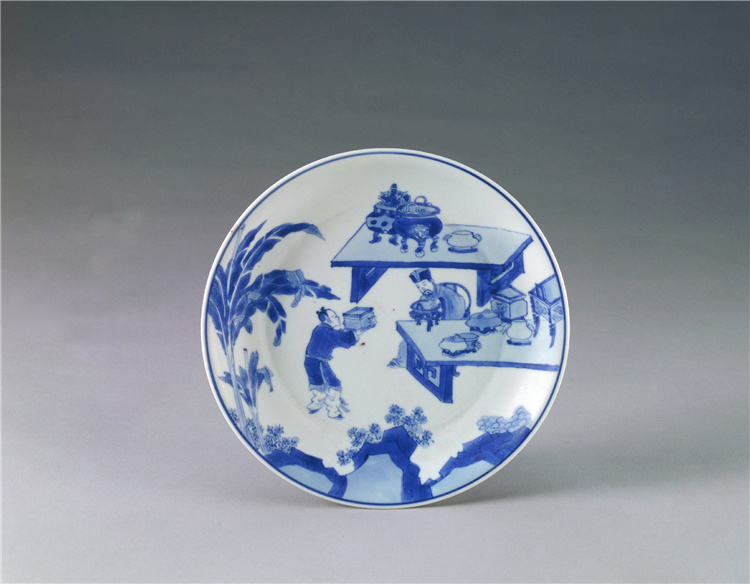 景德鎮窯青花人物故事圖盤《東坡博古》