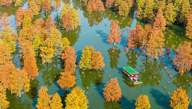 安徽廬江:千年大漢塘池杉斑斕如畫