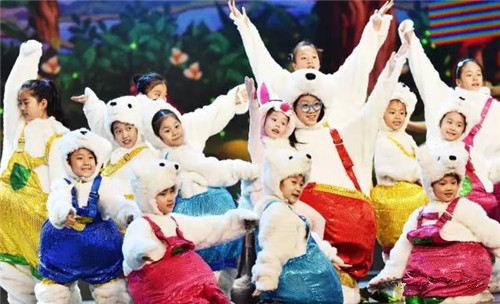 在今年”六一”晚會的舞臺上藍天娃們可是主力呢,看看他們的造型真是超萌,有可愛的蘑菇、螞蟻、小雪人、小兔子、小熊……光服裝造型都不少於15套,每一個道具服裝配着嬰兒肥的萌娃們,萌化了心啊!