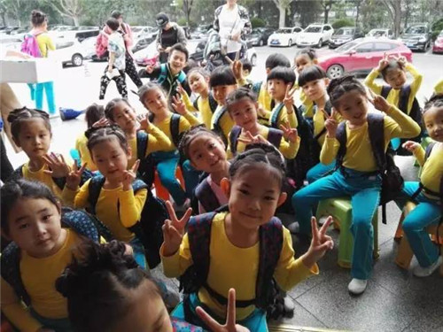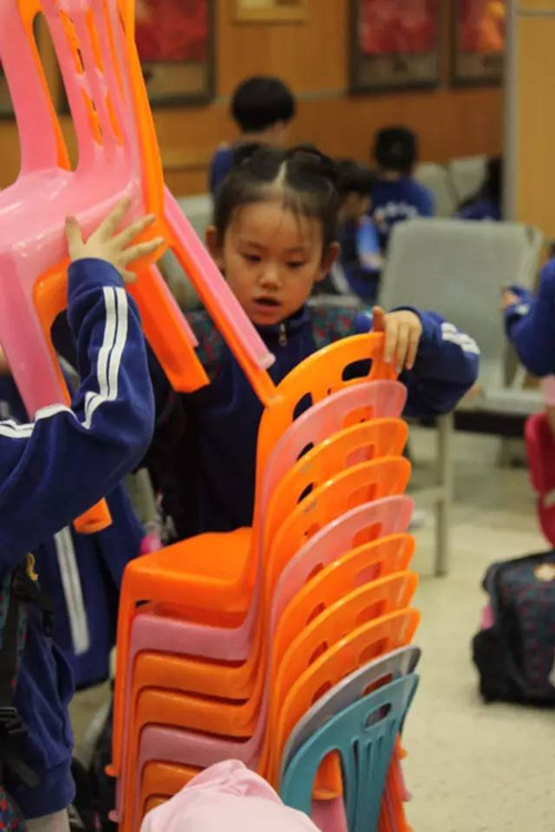 到達六一晚會錄製地,搬着凳子有秩序的隨老師入場,不吵不鬧。