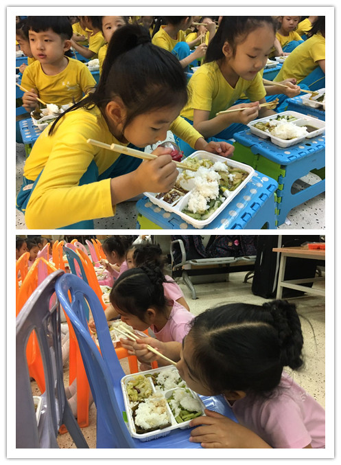 排練間隙,不用老師監督,自己穿好衣服,專心大口吃飯。
