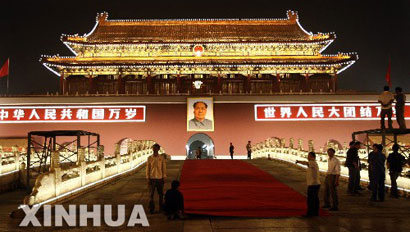 ميدان تيان آن مون يتحلى بنشاط وحيوية ليلا استقبالا للعيد الوطني