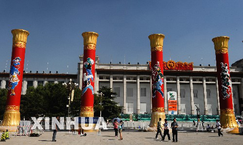 ميدان تيانآنمن يستعد لفعاليات الاحتفالات بالعيد الوطني الستين