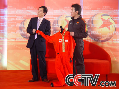 韓小鵬展示奪冠時穿的波司登羽絨服