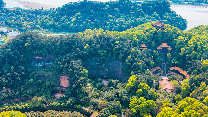 樂山巨型睡佛又稱隱形睡佛,位於樂山城側的三江(岷江、青衣江、大渡河)匯流處,這尊睡佛全身長達4000余米。佛頭、佛身、佛足由烏尤山、凌雲山和東岩聯襟而成,四肢齊全,體態勻稱,面目清秀,安詳地漂臥在青衣江山脊上,仰面朝天,慈祥凝重。
