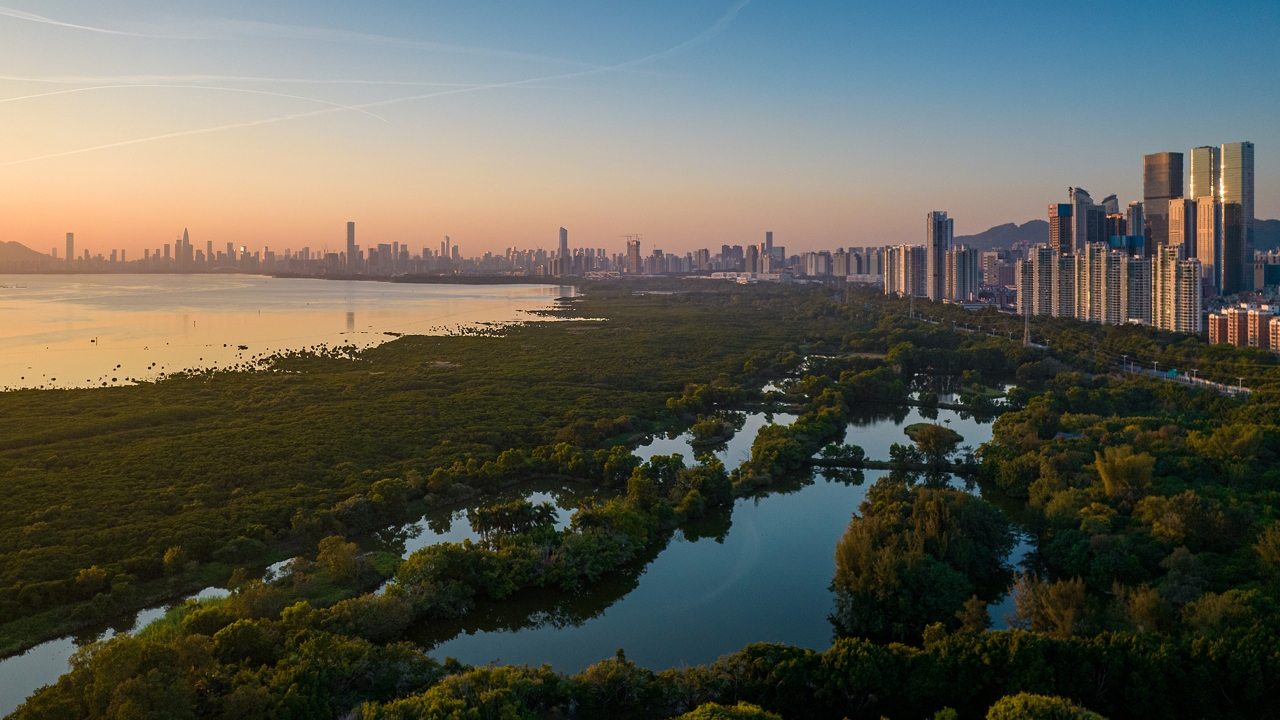 廣東內伶仃福田國家級自然保護區位於深圳市,總面積921.64公頃,由內伶仃島和福田紅樹林兩個區域組成。其中福田紅樹林位於美麗的深圳灣畔,是全國唯一處在城市腹地、面積最小的國家級自然保區,主要保護紅樹林和越冬水鳥。每年有近百種、數萬隻水鳥在此棲息。紅樹碧海、鷗鷺翔集,呈現了城市與濕地相融、人與自然和諧共生的畫卷。