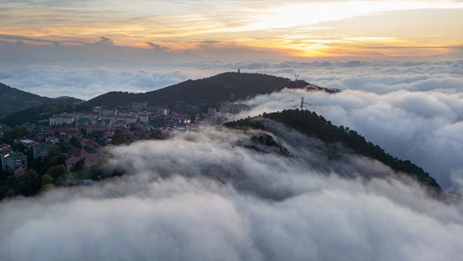 江西九江:雲濤傾瀉 廬山再現瀑布雲
