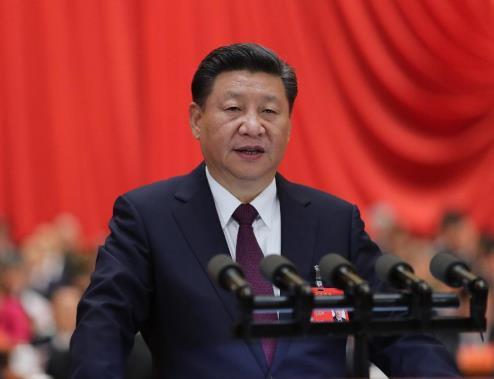 2017年10月18日,習近平在中國共産黨第十九次全國代表大會上作報告。圖片來源:新華社