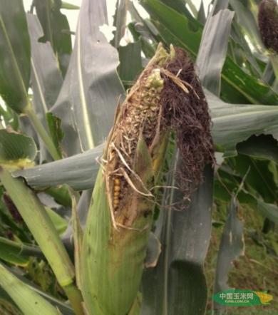 8月14日(周二),中國玉米網東北蟲害考察第一天,遼寧小分隊深入遼寧康平、法庫地區實地調研。在和平鄉胡家屯村調研時發現,在當地風力發電廠附近的高地玉米粘蟲較為嚴重,據農戶介紹,主要是由於前期降水稀釋了除草劑的藥效,部分地塊除草劑失效,所以雜草生長的較為茂盛。另外近些年由於玉米種植效益好,農戶多采用密植玉米,也是目前粘蟲不好控制的原因之一,植株過密不利於噴灑農藥,卻利於蟲子“飽餐”。單個玉米植株在農戶打了3次藥以後仍舊有20-30隻/株的粘蟲,雖然經過第四次噴灑農藥,但是有的植株已經幾乎就剩下光禿禿的玉米棒子了,由於缺少了葉片的光合作用,玉米穗已經出現了枯萎的現象,另外粘蟲在吃光葉片以後開始採食玉米,下圖為粘蟲吃過的玉米與其他村鎮未受蟲害侵襲的灌漿期玉米對比圖。(中國玉米網原創)