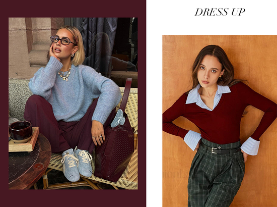 酒紅色和藍色的搭配尤其出彩,有種復古又現代的矛盾美感,是值得借鑒的吸睛撞色。