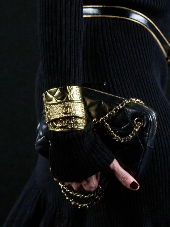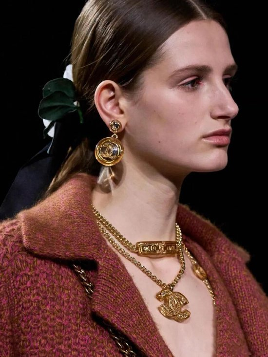 金色飾品是解鎖綠色貴氣與神秘的關鍵。金色點綴於深邃的絲絨綠之上,賦予造型一種低調而深邃的奢華氣質。