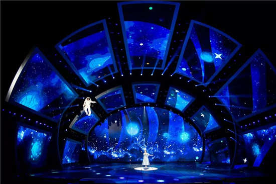 另一個讓我很難忘的是有一首歌的舞臺效果,給人很夢幻的感覺,藍紫色的光影效果搭配“航天員”的“太空漫步”,讓我感受到了太空的神秘和宇宙的廣袤。