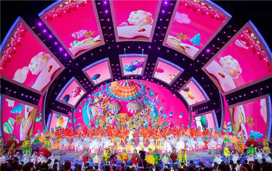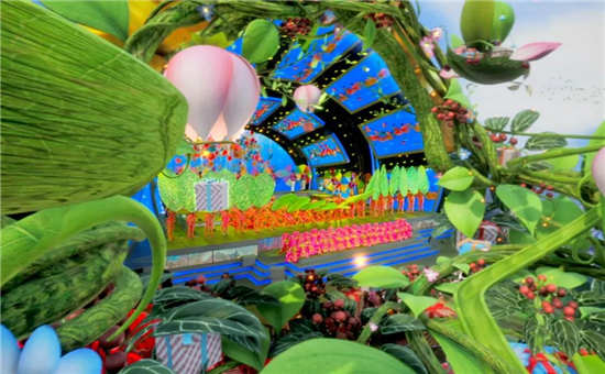 今年的舞臺造型貼合“快來向未來“的主題,呈現出縱深和層次感。晚會主視覺色彩鮮艷明快,整體時尚靈動,兼富創造性與藝術性,整場晚會看下來,感覺美翻了。
