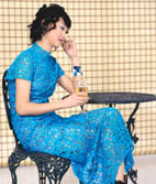 這種被稱為“天衣”的時裝,是用一個個美麗的花瓣圖案拼合而成,在收領處及袖籠、前襟與後襟連接處,看不出任何連接的痕跡,可謂渾然一體,妙合天成。這種旗袍穿在女性身上,不僅體現出一種華貴氣質和雍雅風度,而且還貼合人體曲線,越發襯托出東方女性的形態美。