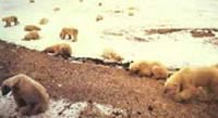 北極熊是北極地區最大的食肉動物,因此也就是北極當然的主宰。如果説,企鵝是南極的象徵,那麼北極的代表自然就是北極熊了。但是,如果從生態平衡的角度來考慮,人們也許會提出這樣的問題:既然狼群的捕獲目標是馴鹿和麝牛等北極最大的食草動物,那麼還要北極熊幹什麼?豈不與--對應的原則不符?是的,如果僅從陸地上來看,北極熊的存在的確有點多餘,這種龐然大物也在草原上迎來逝去,不僅會對本來就為數不多的馴鹿和麝牛等的生存造成巨大威脅,而且也會與狼群爭食,使狼群陷入飢餓的境地。然而,深思熟慮的造物主自有其天衣無縫的巧妙安排,它讓北極熊生活的中心地區是在冰蓋上,因為那裏有大量海象和海豹之類在繁衍生息,除了為數極少的嗜殺鯨之外,基本上沒有什麼天敵,它們那碩大肥胖的軀體又必須要有一種強大而貪食的動物去消耗,北極熊正好找到了用武之地。於是,北極熊便在這個茫茫無邊的冰雪世界裏確定了自己無可爭議的統治地位,成了這個白色王國的主宰,不必再跑到陸地上去與可憐的狼群爭食。儘管如此,北極熊仍然是一種陸生的動物。
