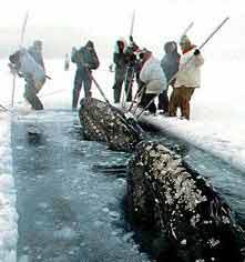 愛斯基摩老獵人常常會向年輕獵手念叨一些“故事”,尤其是從他們的前輩哪沿襲下來的許多捕鯨方法。他們認為,這些方法能夠讓鯨心甘情願地被他們所捕獲。 例如,他們説,關鍵的一點是,不能讓自己貪圖享受。雖然有海豹皮做的帳篷和馴鹿皮做的睡袋,但是在捕鯨營地是禁止使用這些東西的。火也不能用,不能吃煮熟的肉,不能喝熱水或熱湯。