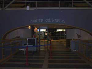 在挪威最北部城市----通索市的機場安檢處大門的上方用挪威文寫着通向北極之門。(侯軍攝)