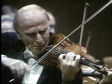 耶胡迪 梅紐因(1916-1999)是個神童,是他那個時代最著名的小提琴家。梅紐因出生於紐約,父母是烏克蘭人,11歲在巴黎首次登臺就轟動一時,次年便完成了首次全球巡迴演出。15歲時,他錄製了由作曲家艾爾加本人擔任指揮的《小提琴協奏曲》,至今仍被認為最具權威。