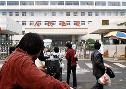 正對着居委會的小門,十幾米外就是人民醫院巨大的背影,人民醫院後門出入的是垃圾和太平間的車輛。幾天前,因為有大量非典病人的出現,一條長長的隔離線將大樓和周圍分割起來。那裏的醫務人員和病人再不能自由出入。一個警察,兩個保安,忠實的守候着醫院後門。