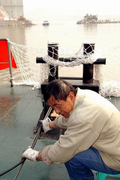 新華社三峽11月5日電:水文測試為截流“保駕護航” 11月3日,長江水利委員會水文局的工作人員正在根據龍口水流情況調整無人監測船的位置。 長江三峽截流是一項系統工程,其設計、科研、試驗均需依賴可靠的水文泥沙和河道觀測資料,尤其是進入圍堰施工、戧堤進佔、龍口合龍後,更需要及時、可靠的實時信息和水文科技服務保障系統。合龍時流速大小、上下圍堰落差多少等水文指標將決定截流進佔施工如何進行,以便控制進佔的拋投材料。這些數據的獲得完全依靠水文測量人員在截流現場實地測量、進行分析處理後傳送到施工決策部門和施工單位。(新華社記者 程敏 攝)