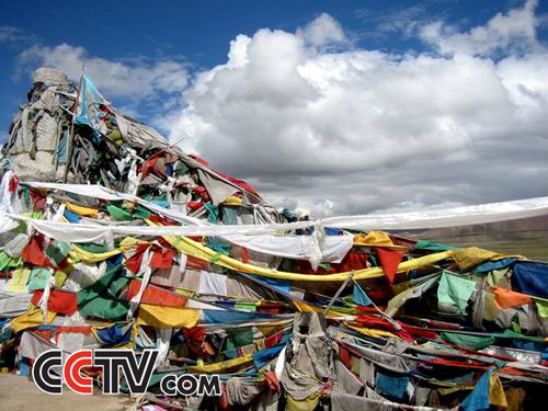 在綿延1100多公里的青藏公路上,海拔最高處是高出海平面5000多米的唐古拉山口。藏民族按照傳統習慣,在這裡拉起了祈禱平安的經幡。