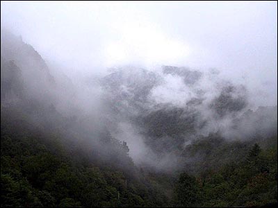 心情漸好,雨也小了,風雨中的燕子埡此時在眼中又顯得如詩似畫的了,雲霧裊裊,恍若仙境。