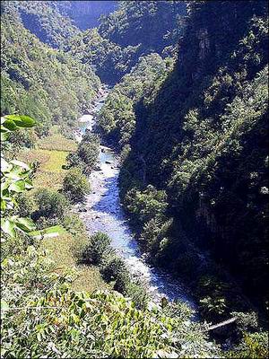 “2002年穿越神農架”科考隊近日穿越的陰峪河大峽谷,王家生介紹説:神農架有四大水系:香溪河、沿渡河、南河、堵河。穿越隊穿越的陰峪河是堵河的一條支流。西源板倉,東入漢水。因河水從少見陽光的高山深谷中穿過,而得名“陰峪河”。