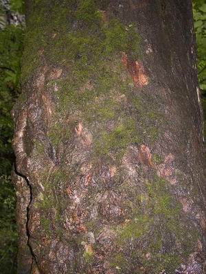 犀牛洞旁邊的小路通往原始森林,長滿青苔的老樹皮被雨水打過,看上去真的就像是犀牛皮。