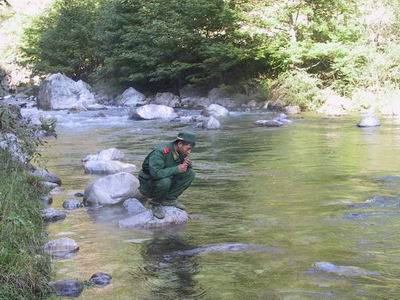 他努力地給我介紹這周遍的情況,還説他前幾天在這裡捉到了一條娃娃魚,當然後來放掉了。見我感興趣,他開始邊介紹娃娃魚的特徵和習性邊低頭仔細地幫我找起來。這時,我覺得去不去陰峪河已經無所謂了。(圖文 央視國際特派記者 阿為)