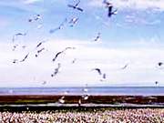 Situated high up on the Qingzang Plateau, Qinghai lake occupies an area of more than 4,500 square kilometers. At 3,200 m above sea level, its waters are extremely cold and salty. They are, however, teeming with fish and populated by nesting birds.