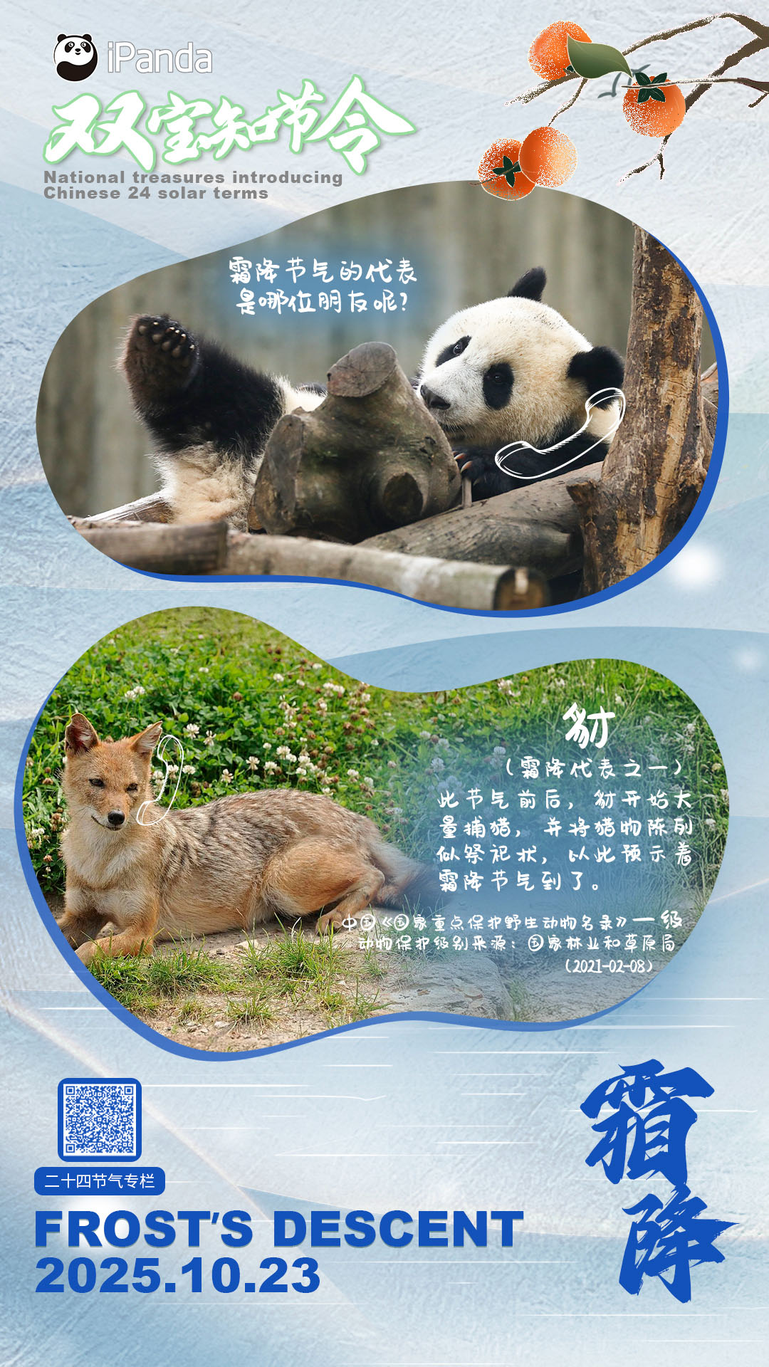 霜降三候:“一候豺乃祭獸,二候草木黃落,三候蜇蟲鹹俯”