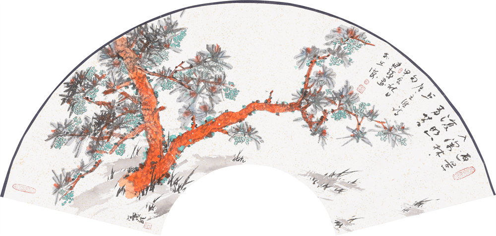 煙翠三秋色,波濤萬古痕 紙本水墨,扇面,2024