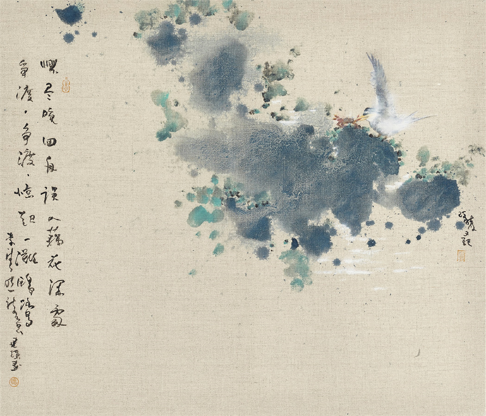 下窺指高鳥 俯聽聞驚風 紙本水墨