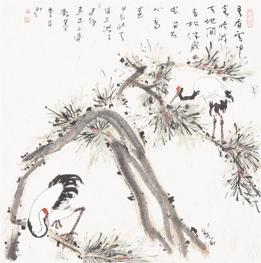 鶴舞松間祥瑞生 紙本水墨 42cmx42cm