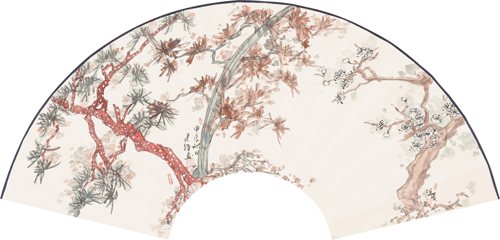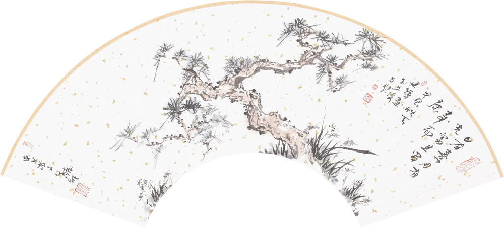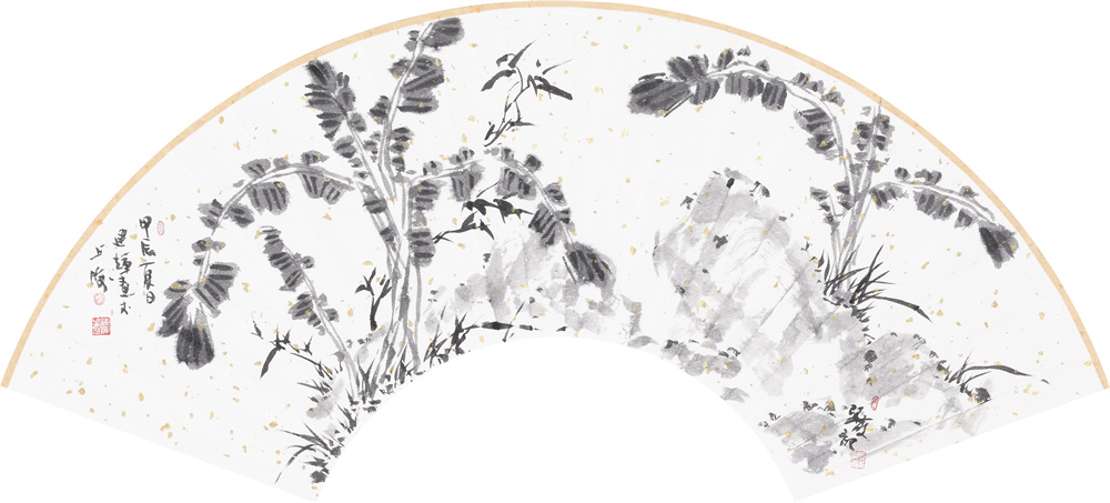 日月伴壽長(二) 紙本水墨,扇面,2024