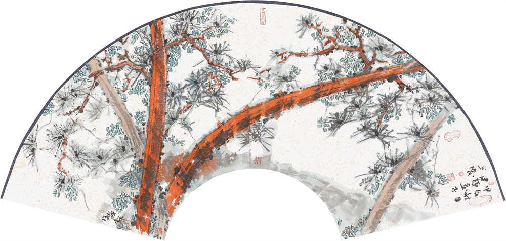 龜壽長久,福澤綿延 紙本水墨,扇面,2024