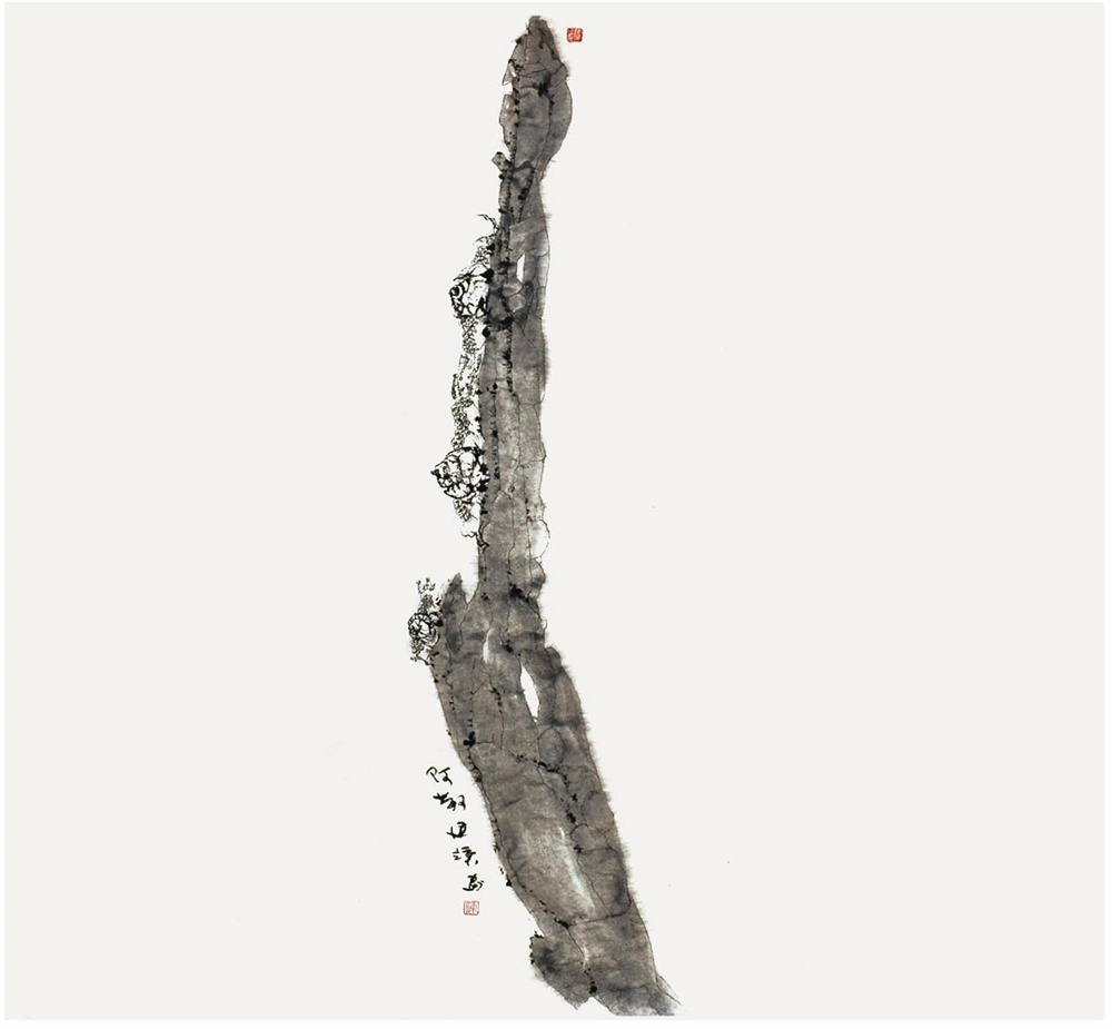 “岩”Cliff 366cmx144cm 紙本水墨 2011