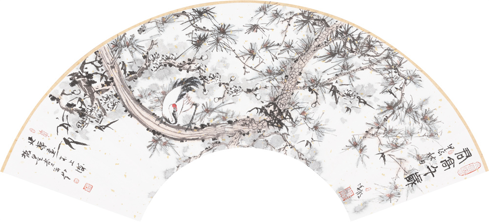 絕頂人來少,高松鶴不群 紙本水墨,扇面,2024
