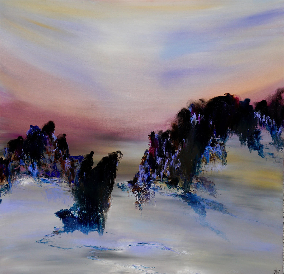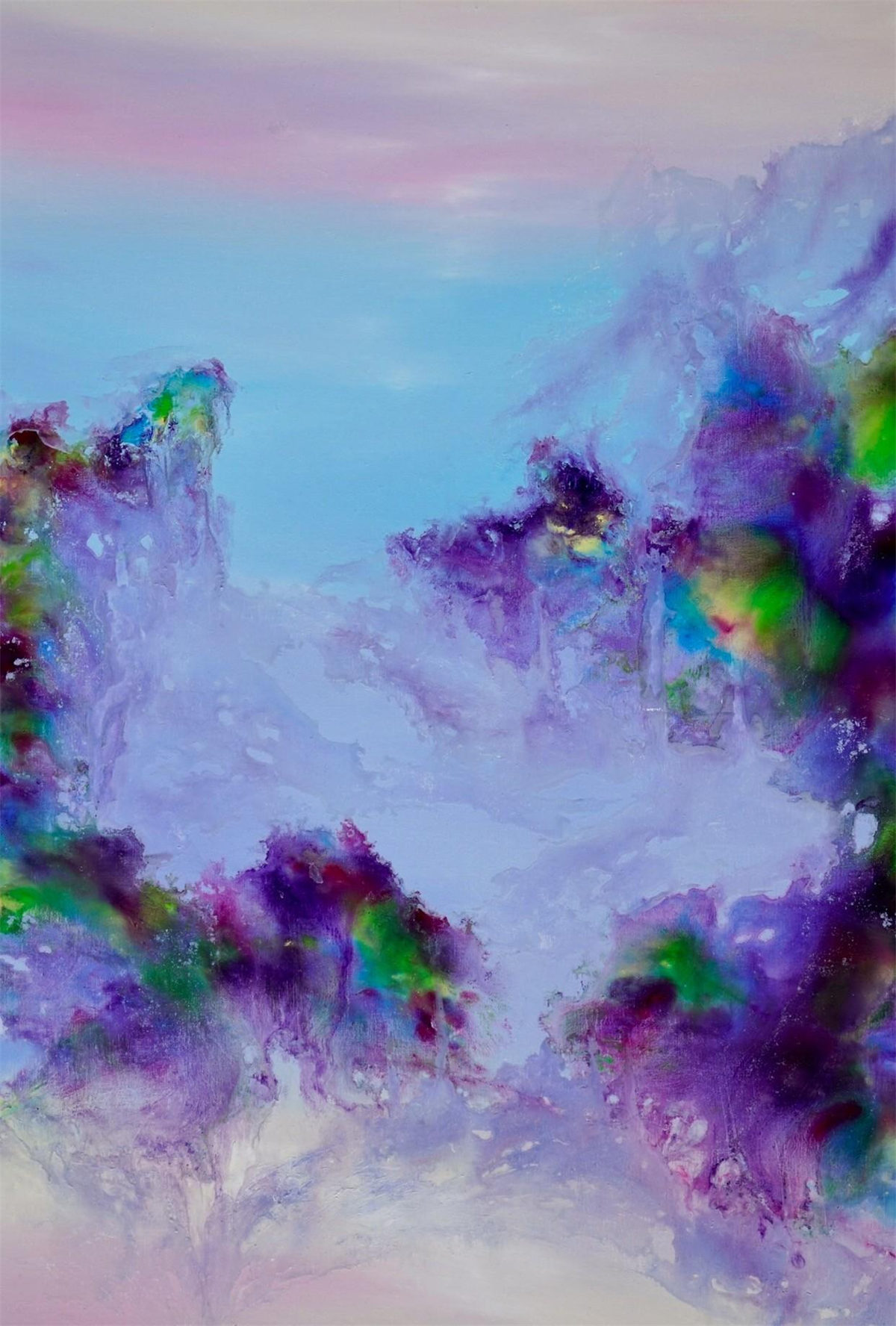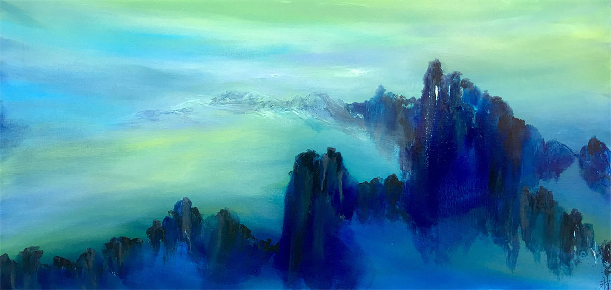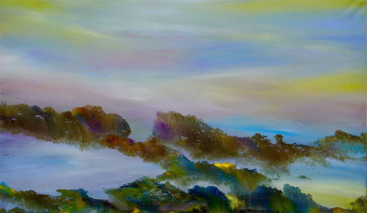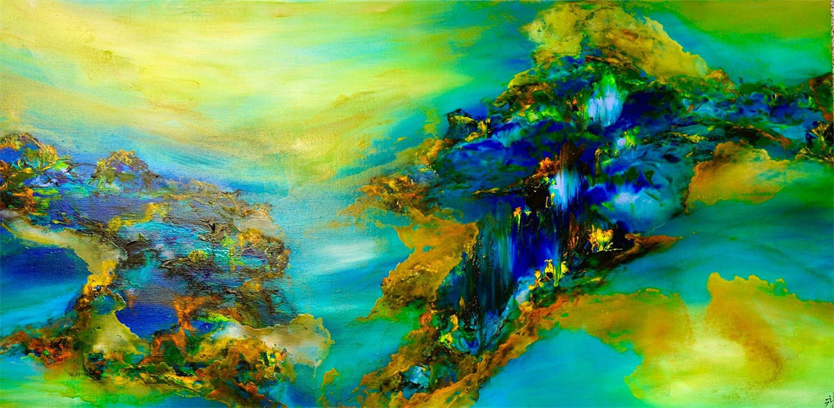 陸永安先生的創作並沒有模倣、照搬,而是很好的學習吸收。一邊是西方繪畫對光與色的運用,另一邊是中國文化當中的意象抽象,他將色彩相互交融,又把水墨精神融入進去,産生了一個完全不同於西方,但是又不同我們本土畫家的樣式,美不勝收的色彩標識在中國繪畫傳統與西方現代主義之間激蕩碰撞。