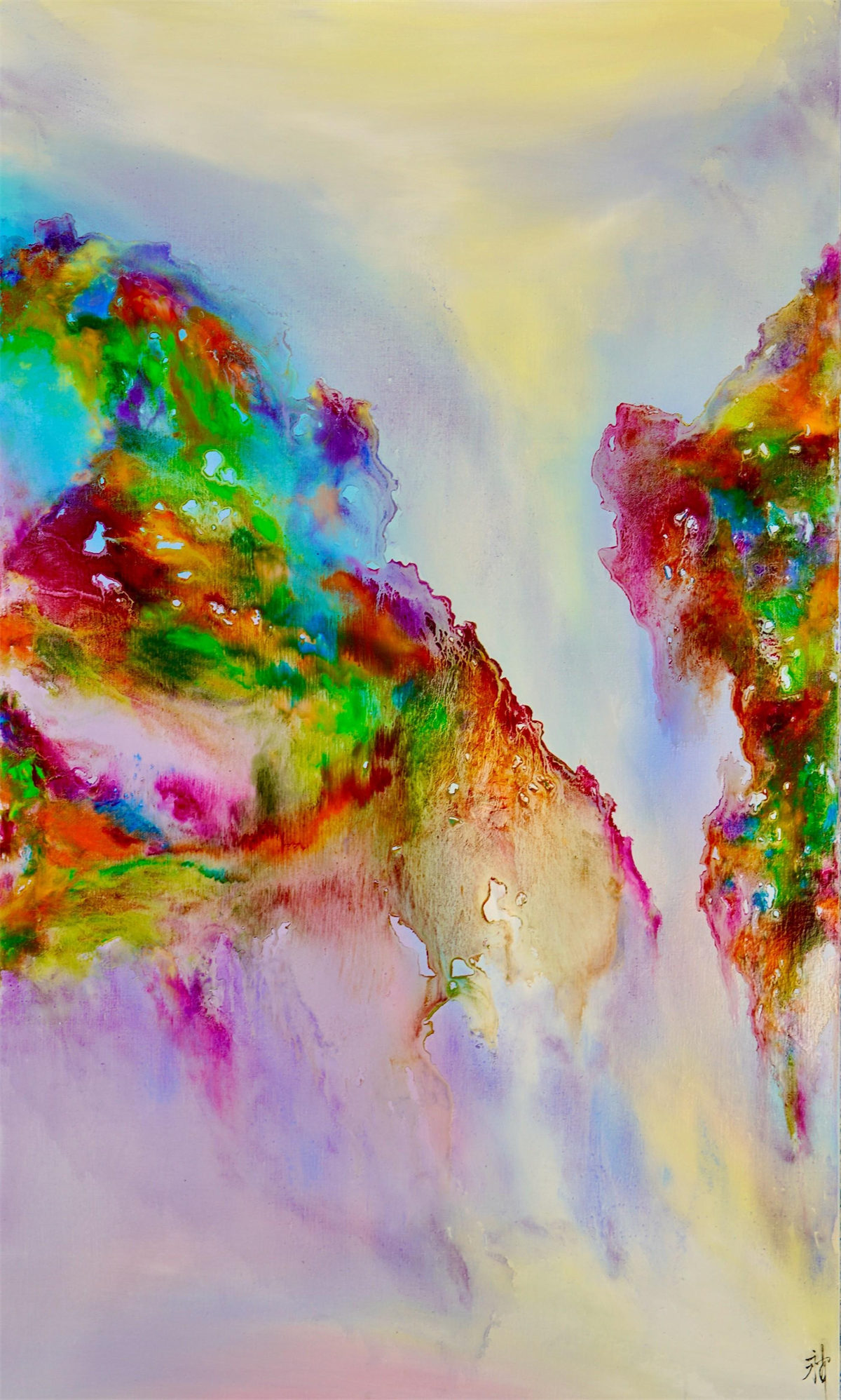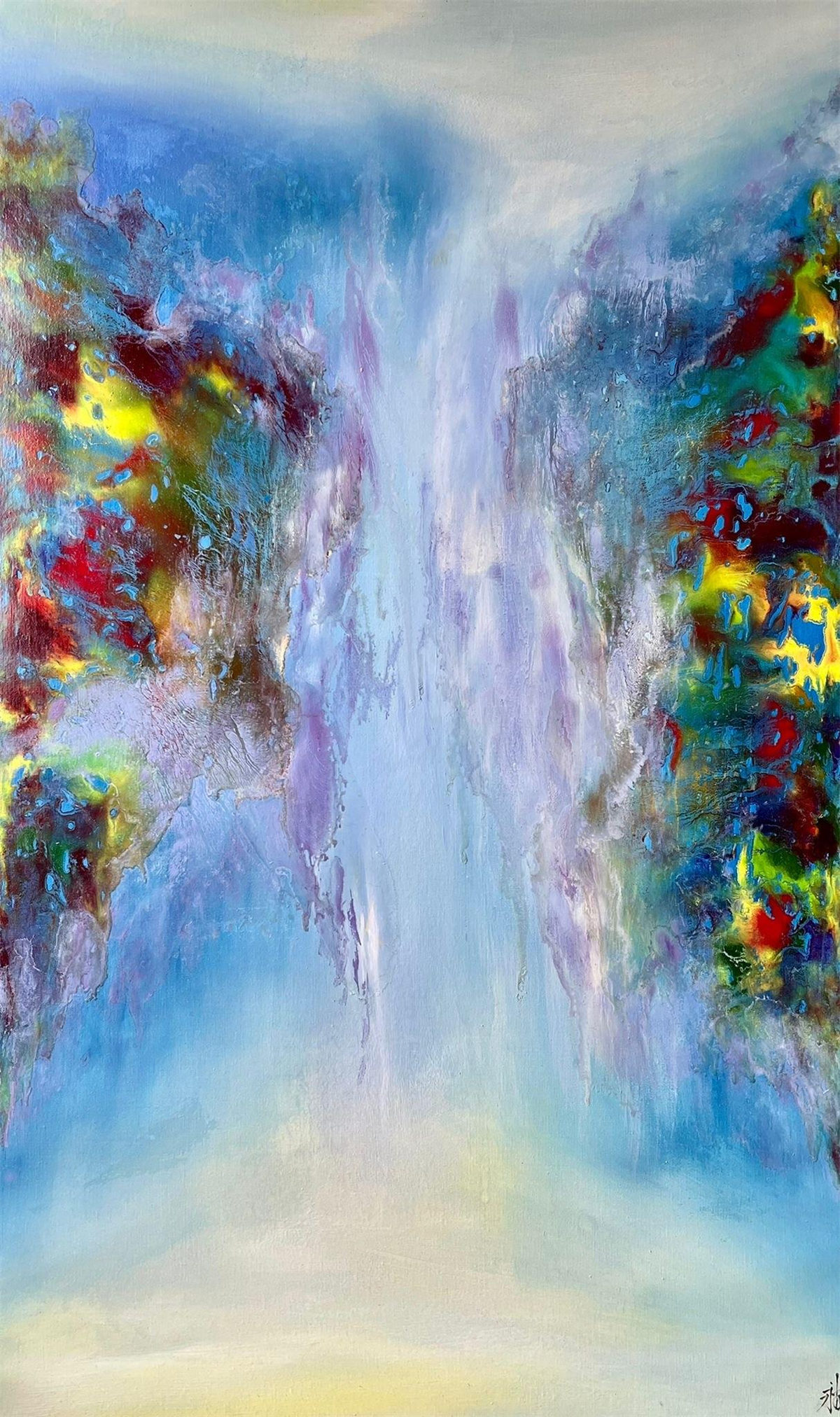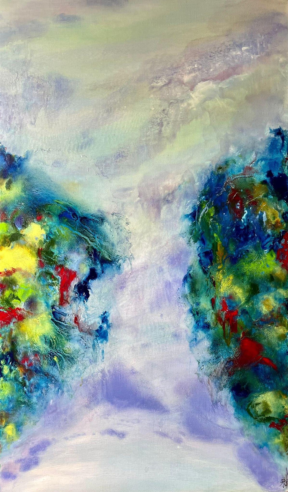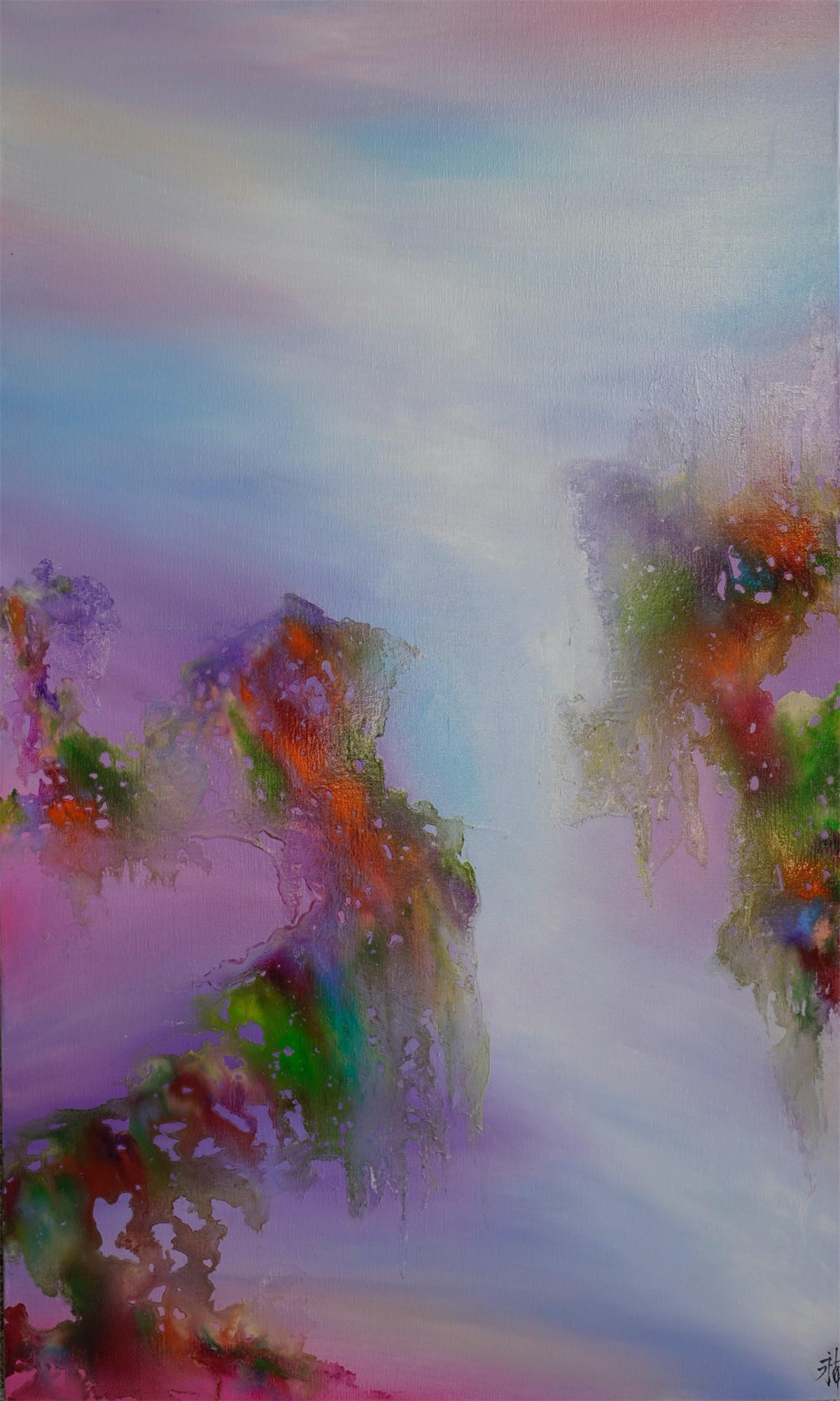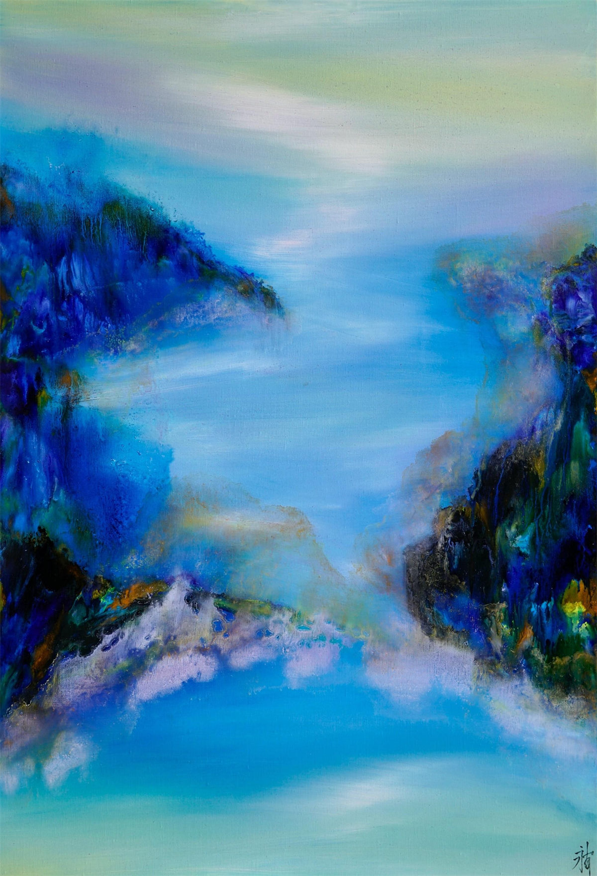 陸永安先生的創作並沒有模倣、照搬,而是很好的學習吸收。一邊是西方繪畫對光與色的運用,另一邊是中國文化當中的意象抽象,他將色彩相互交融,又把水墨精神融入進去,産生了一個完全不同於西方,但是又不同我們本土畫家的樣式,美不勝收的色彩標識在中國繪畫傳統與西方現代主義之間激蕩碰撞。