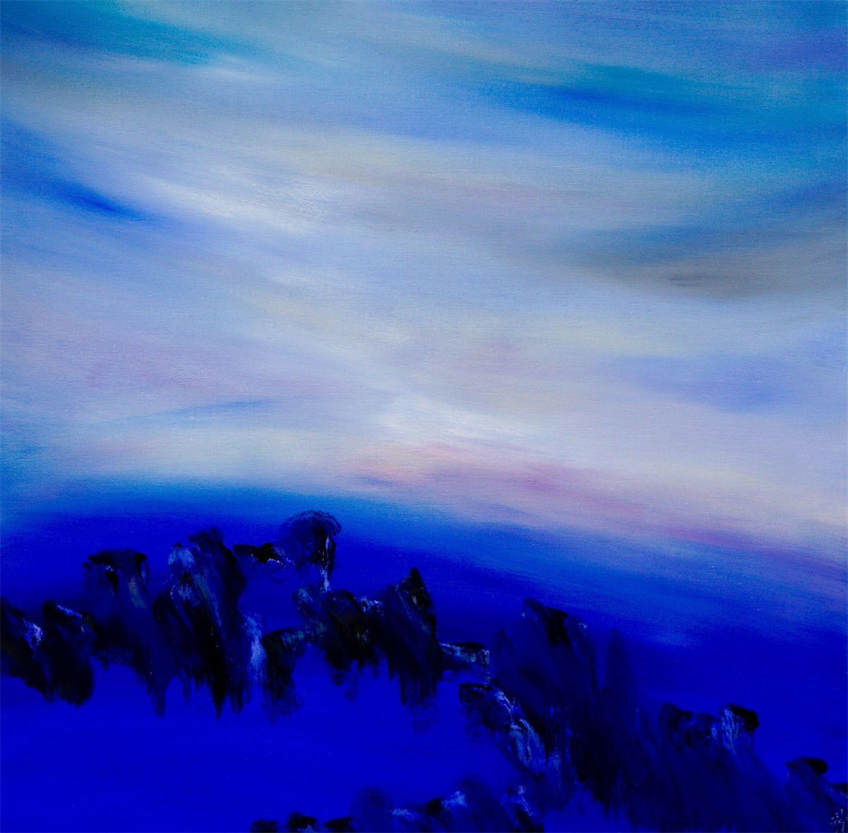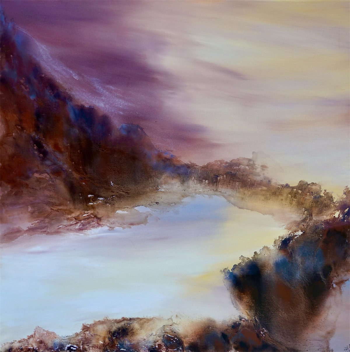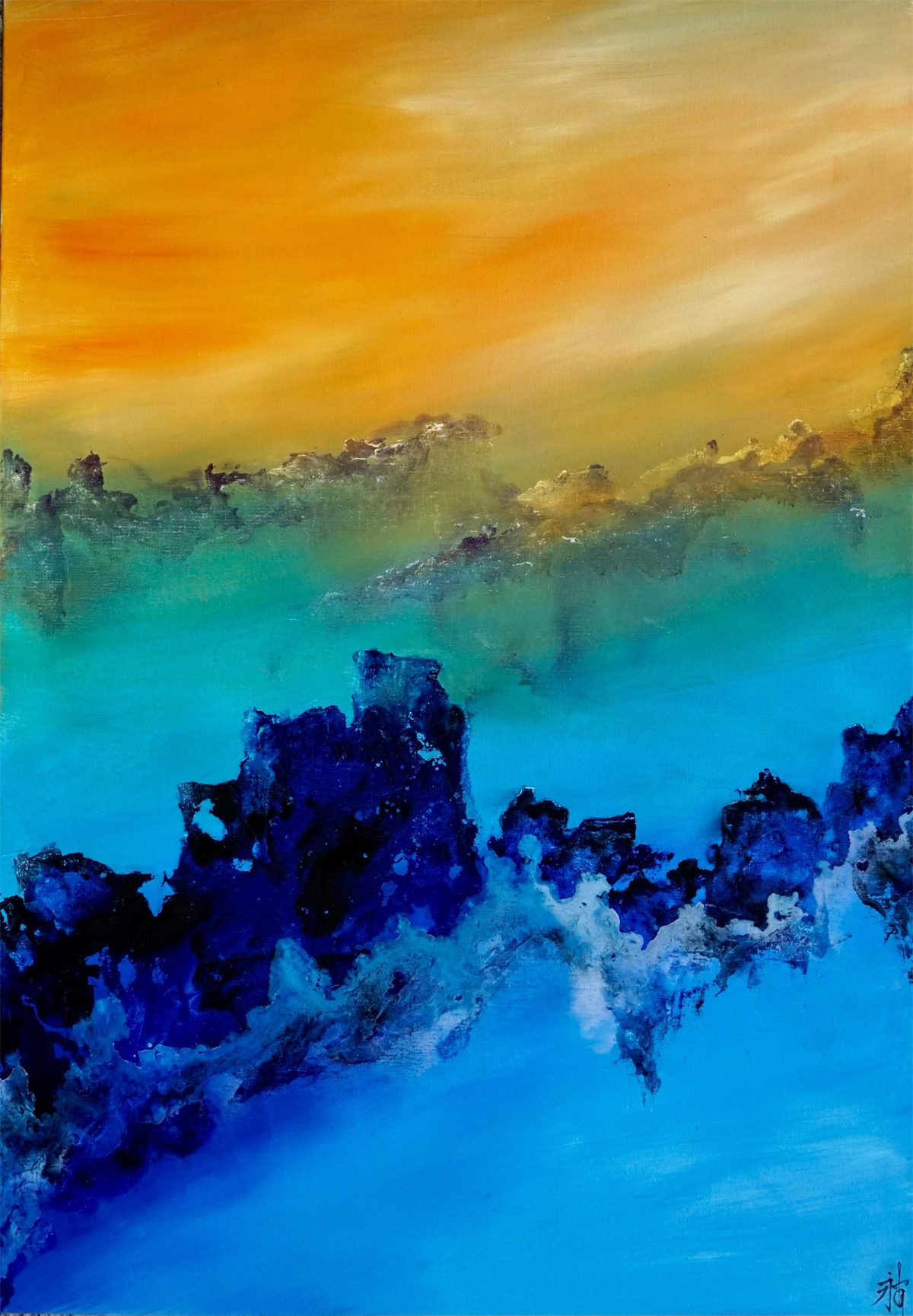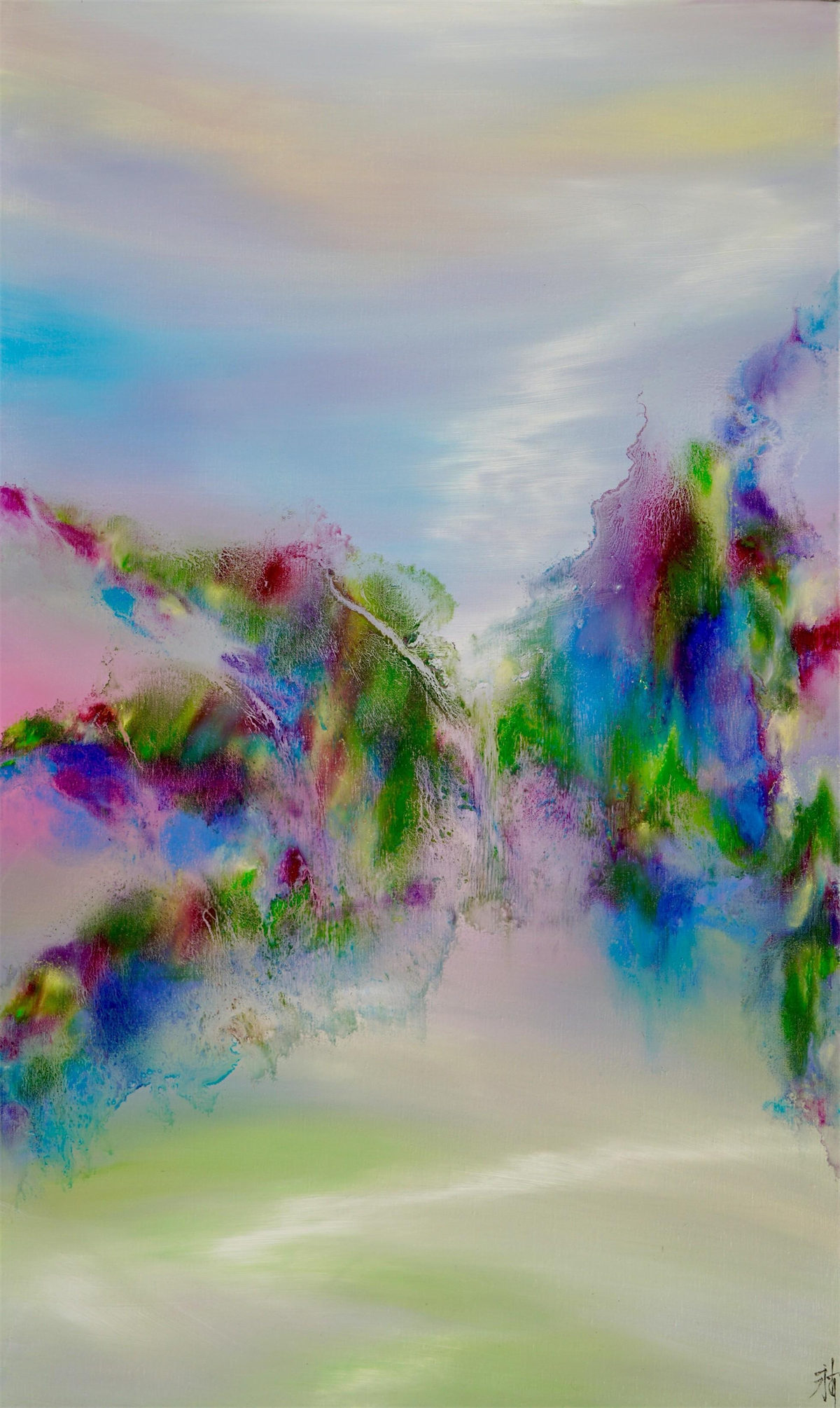陸永安先生的創作並沒有模倣、照搬,而是很好的學習吸收。一邊是西方繪畫對光與色的運用,另一邊是中國文化當中的意象抽象,他將色彩相互交融,又把水墨精神融入進去,産生了一個完全不同於西方,但是又不同我們本土畫家的樣式,美不勝收的色彩標識在中國繪畫傳統與西方現代主義之間激蕩碰撞。