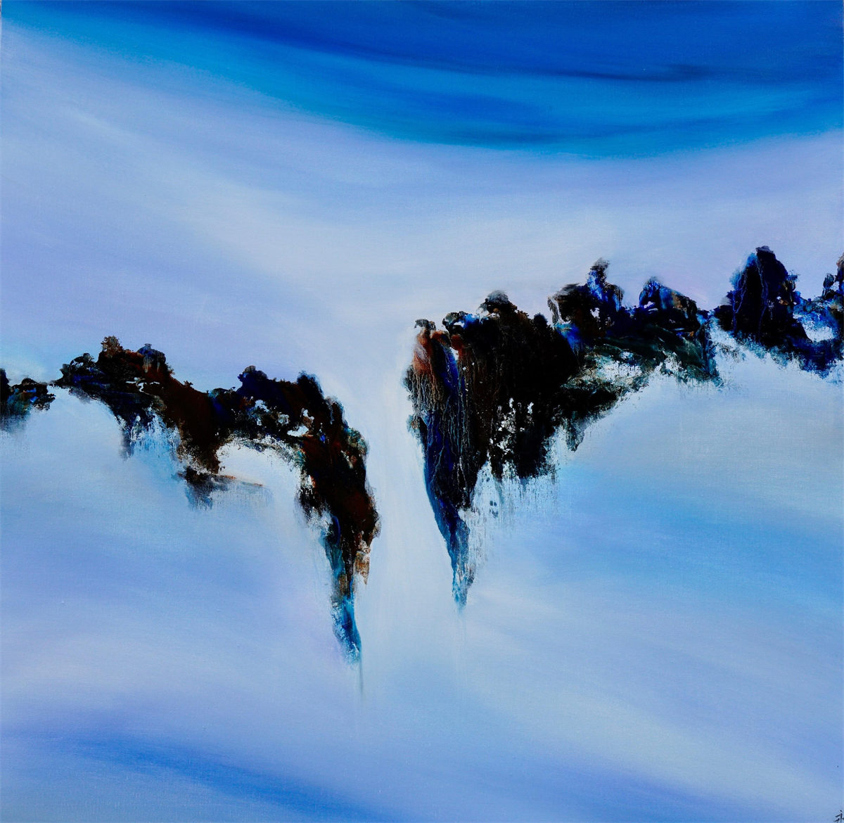 趙無極用寥寥數語格式化地回答了我們的問題:“獲取一種技法,能讓我用畫筆去表達我自身在我體內感覺到的東西。”我知道,這是他與自身的一場艱苦的搏鬥……但唯有如此,他才成為一位非常偉大的畫家!我似乎覺得,陸永安,一個少有的有特權在趙無極身邊貼身並肩工作的畫家,才能以他自身的角度重復趙無極説出這樣的話。我們可以説,陸永安是有別於趙無極的趙無極的傳人。趙無極和陸永安兩人同樣都是風景畫家。更確切地説,他們都是不是風景勝似風景的風景畫家。