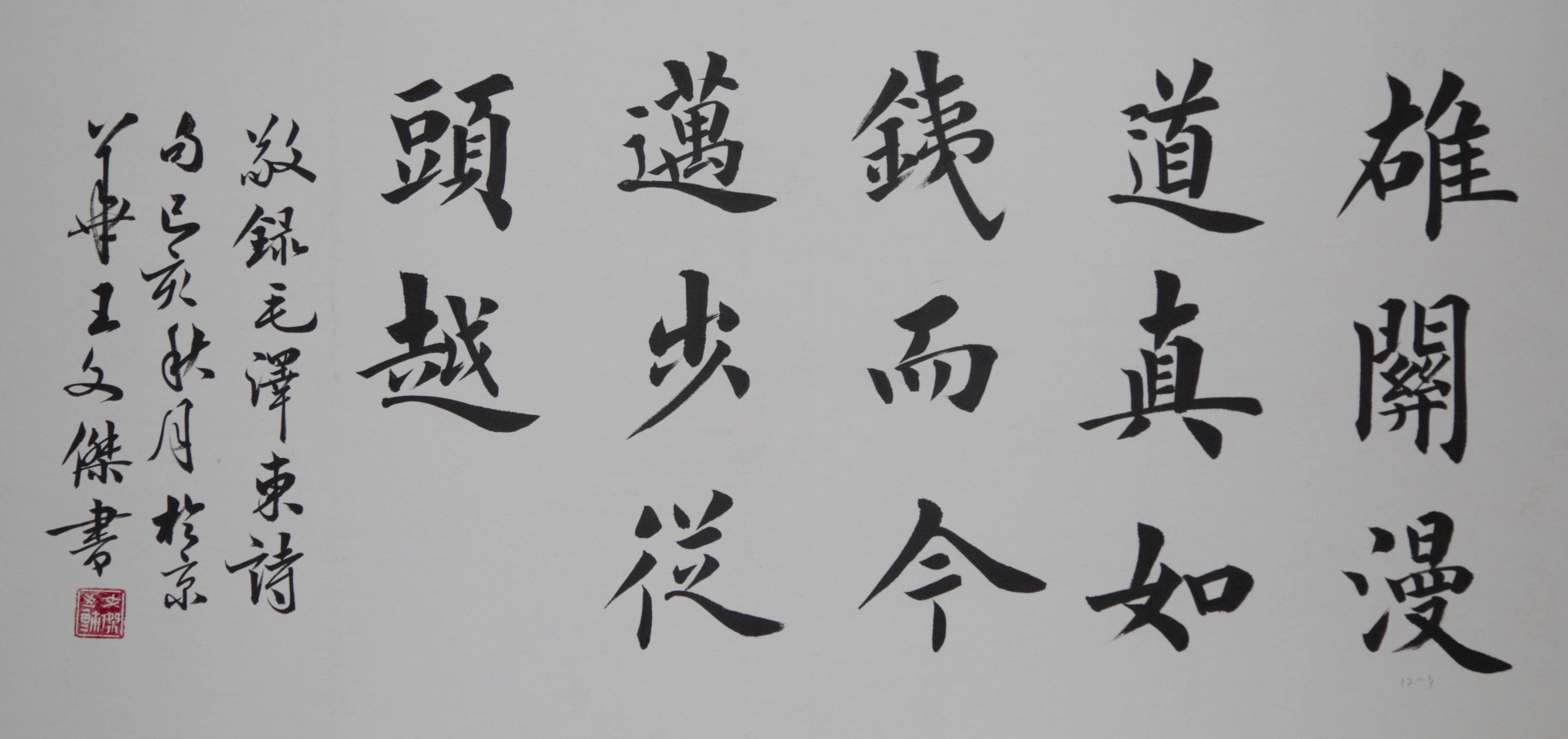 王文傑,第六屆中國書法家協會理事,中國作家協會會員,中國人民解放軍書畫研究院書法藝術委員會委員,原蘭州軍區美術書法研究院名譽院長。文化部國家藝術基金專家庫(書法系列)專家。江蘇藝術基金評審專家。清華大學美院客座教授。2013年、2014年、2020年分別在中國人民解放軍軍事博物館、中國美術館、中國國際文化交流中心舉辦個人書法展。